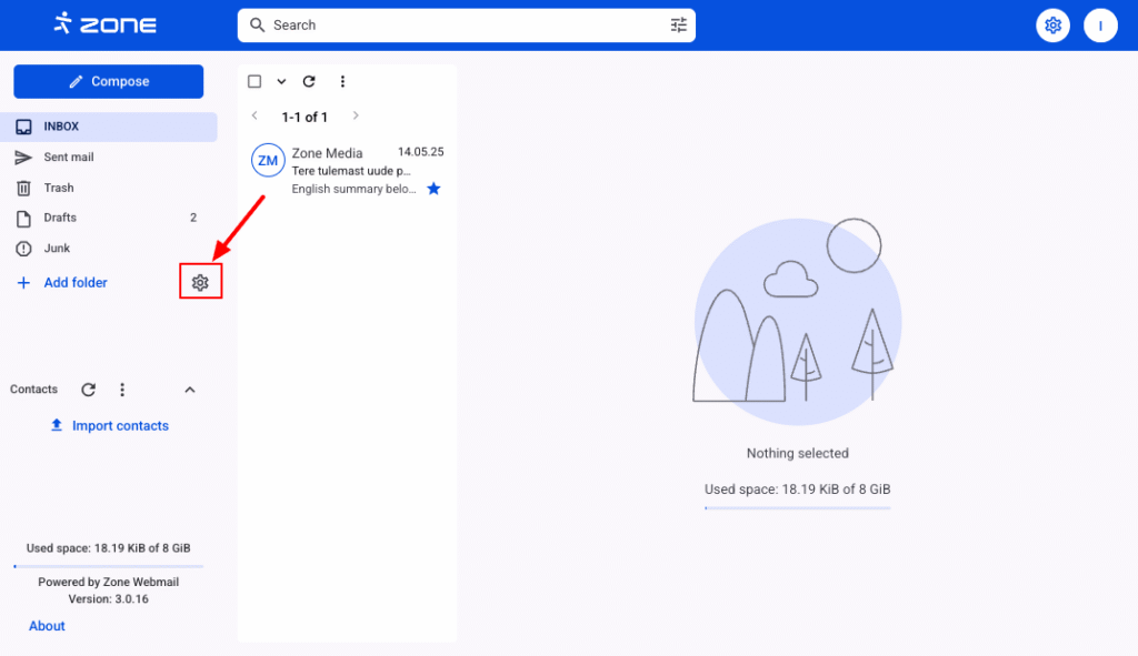 Folders settings can be changed by clicking on the gear on the main webmail page: