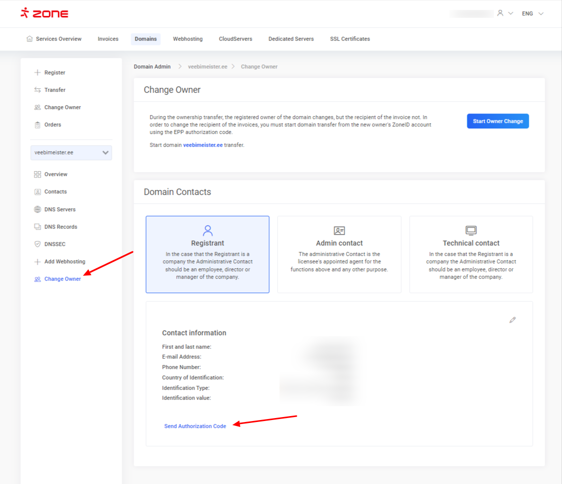 You can also order an authorisation code through the .EE domain registrant portal on the central registry website, which can be accessed using an Estonian (including e-residents) ID card, Mobile-ID, bank link or EU electronic identity card (EIDAS): https://registrant.internet.ee/.