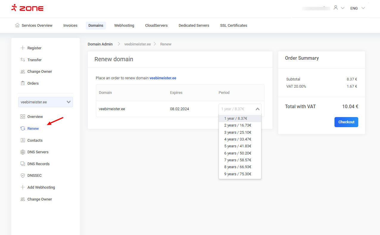 Estonian .EE domain renewal