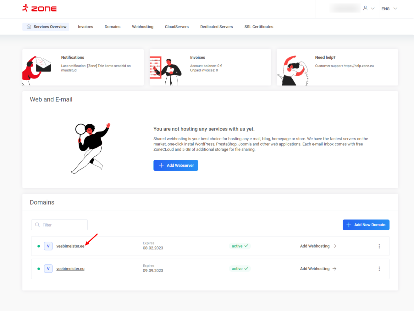 The web hosting service for your expired domain is not closed automatically! In case you no longer need the web hosting server for your expired domain, please let us know to info@zone.ee address
