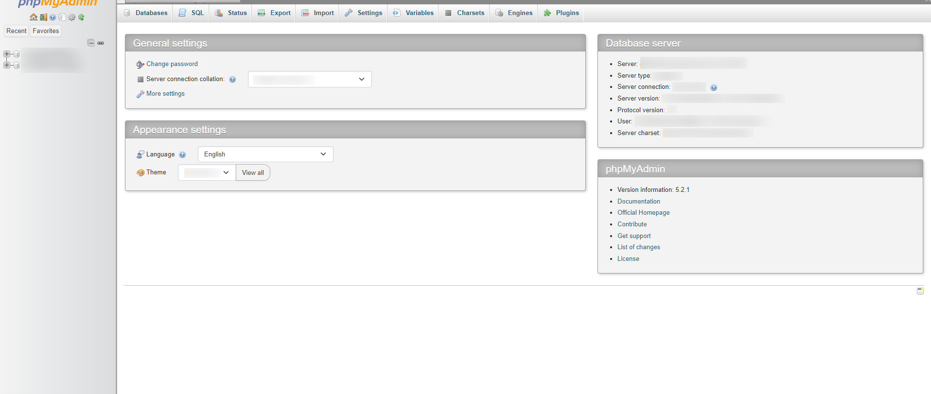 In the following window, enter the credentials for your database user. You can add or remove MySQL/MariaDB accounts via Webhosting ->Databases -> MySQL/MariaDB