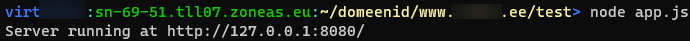 To make sure the app is running, you can connect to the server via SSH and run the node file-name command (in our example, node app.js) in the folder containing the app: