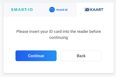 Choose ID-card, insert ID-card into the reader and click Continue.