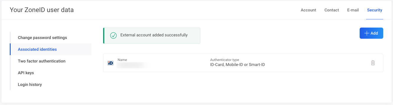 In order to connect ID-card to your ZoneID account, log in to the My Zone admin panel with your username and password, then proceed to Settings > Security. Enter your password once more.