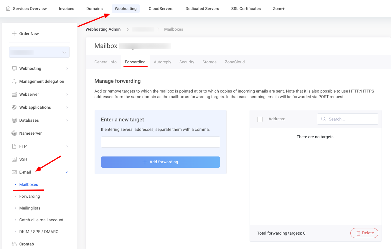 You can add Mail-to-http redirection URLs in My Zone control panel under Web-hosting -> E-mail -> Mailboxes, then click on the mailbox and choose Forwarding .