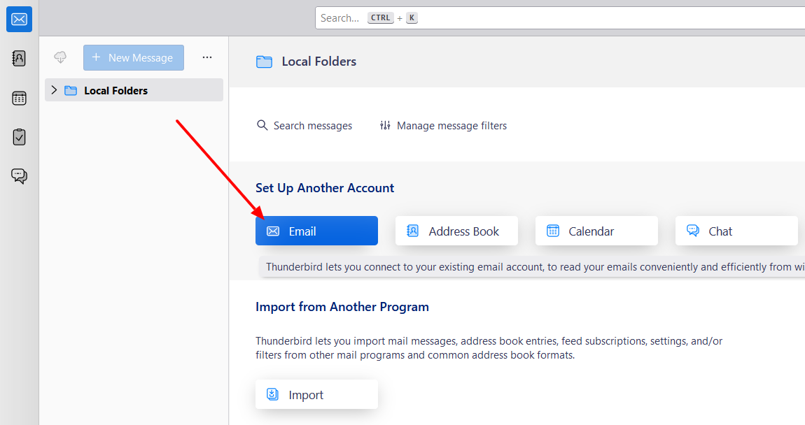 1. The first step is to select Email from the Accounts menu when opening Thunderbird.
