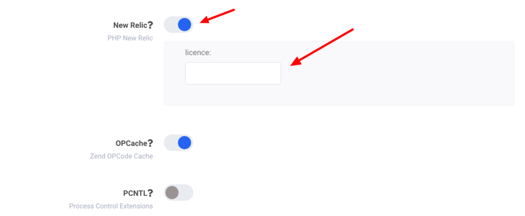 In the next window, look for the “New Relic:” field, tick the box next to it, and add the key you received for the license to the line below it.