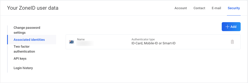 It is highly recommended to connect such external authentication tools as ID-card, Smart-ID, Mobile-ID to a ZoneID account. It is also possible to connect your account to Facebook or Google .