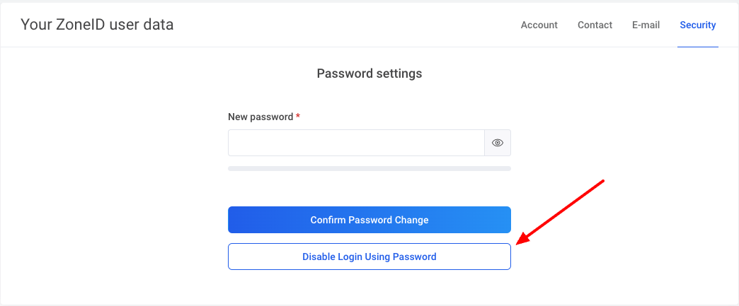 Disabling password login is possible only if your ZoneID account has been connected to any tools of authentication (Mobile-ID, Smart-ID, ID-card or Facebook) and if 2FA support has not been activated. If 2FA is activated, a verification code is always requested when logging in.