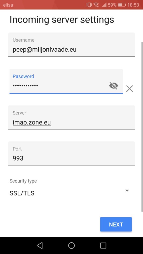 6. Enter incoming mail server mail.zone.eu, then tap NEXT.
