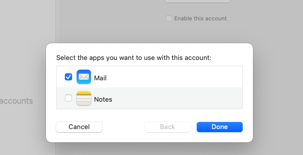 Make sure Mail is chosen and press Done.