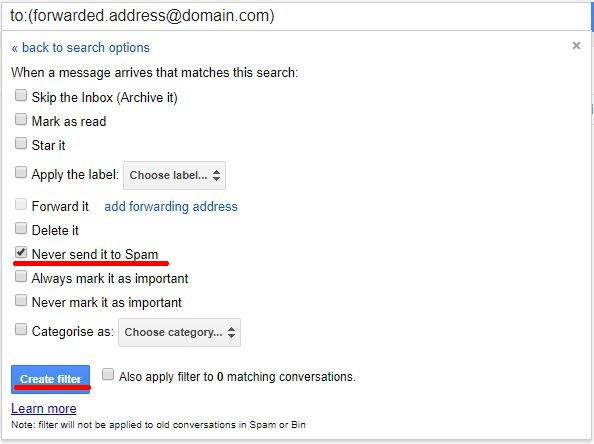 4. Setting up the filter for an address that is forwarded to gmail.com