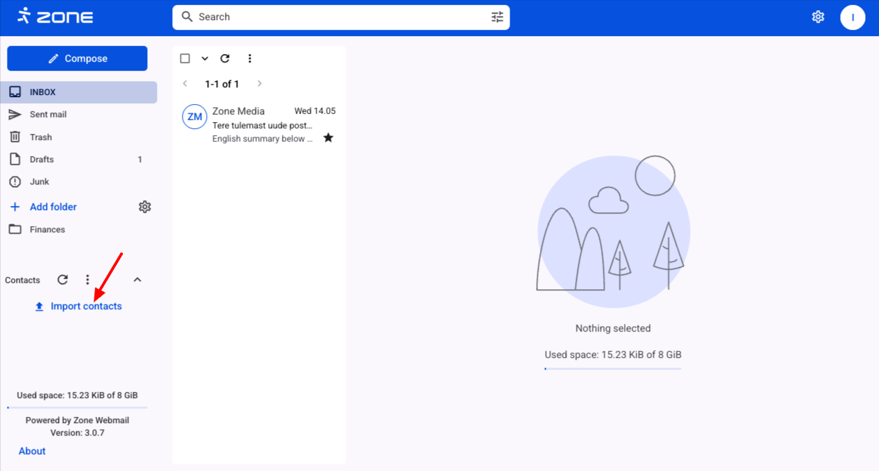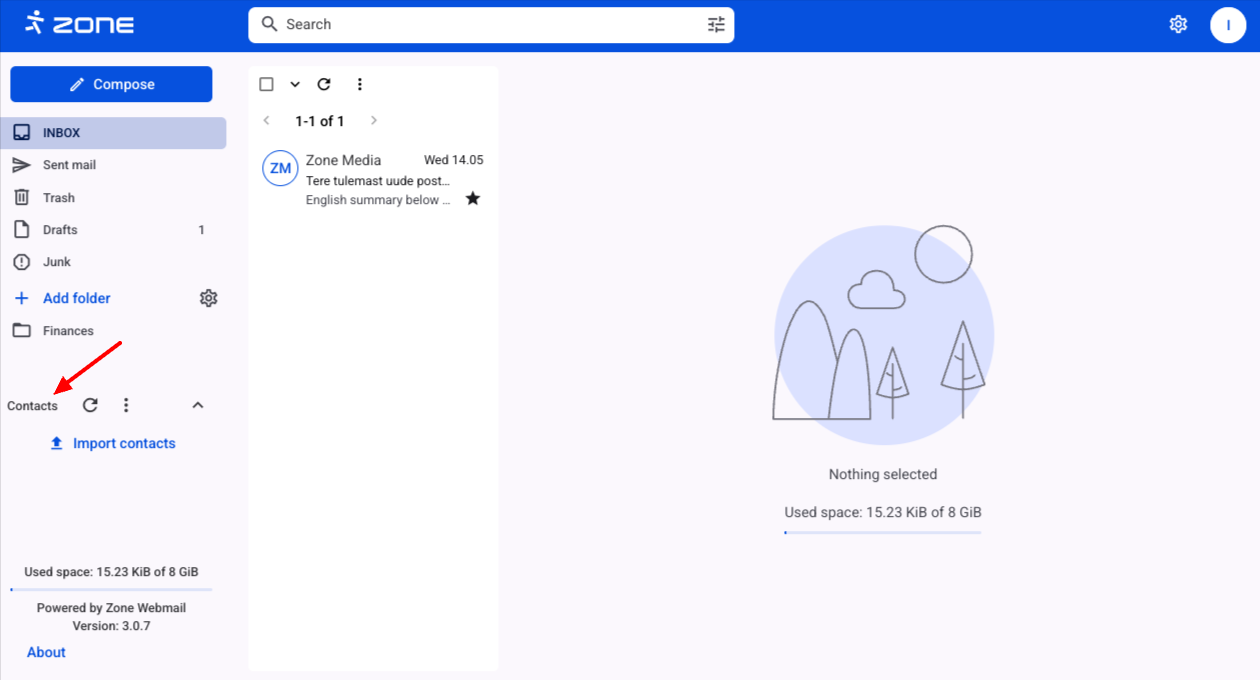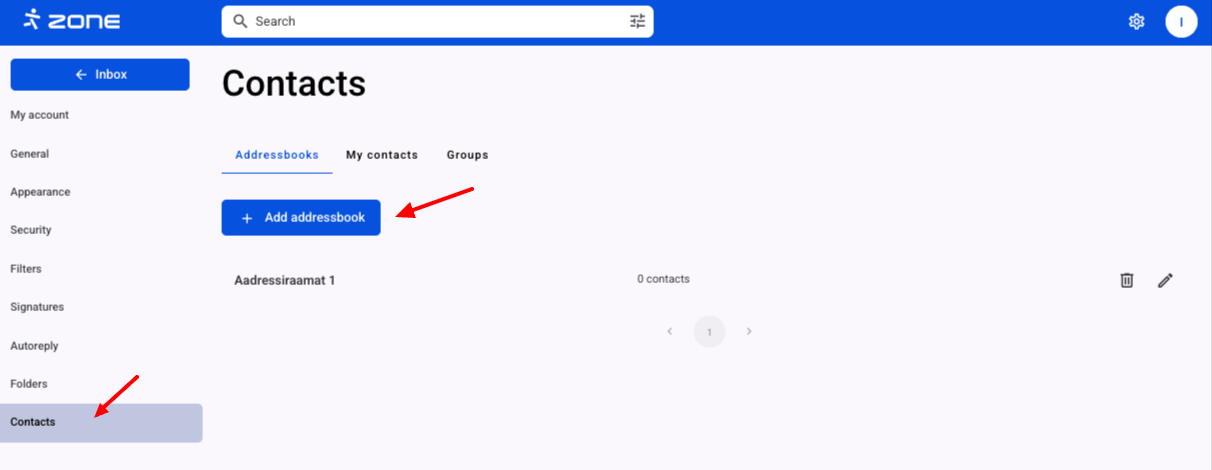 Address book can be added by clicking on the gear icon on the top right and View all settings.