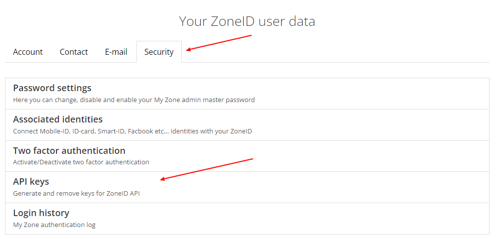 The API authentication is done using the “HTTP basic auth” method with the username as the ZoneID account name, and the password as the API key.