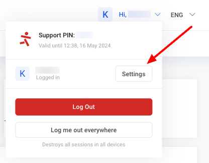The API key can be generated by logging in to My Zone and selecting Settings in the top right corner: