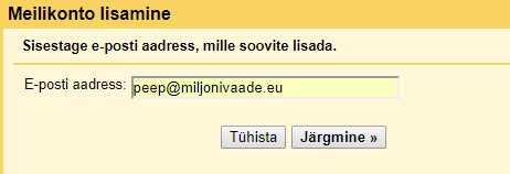 3. Avanevas aknas sisesta oma e-posti aadress, mille kirju soovid Gmailis lugeda ja klõpsa nupule Järgmine >>