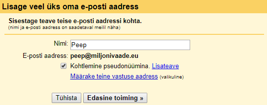 Nüüd jääb üle vaid konto kinnitamine vastavalt Google’i enda juhenditele, peale mida saad kirju oma aadressi kasutades välja saata Gmail’i vahendusel.