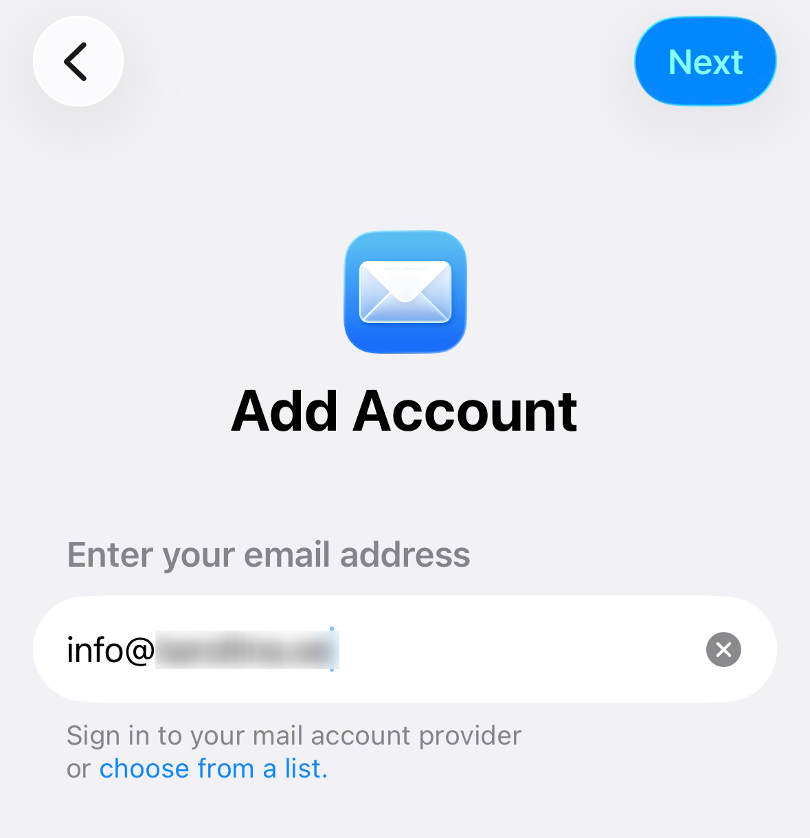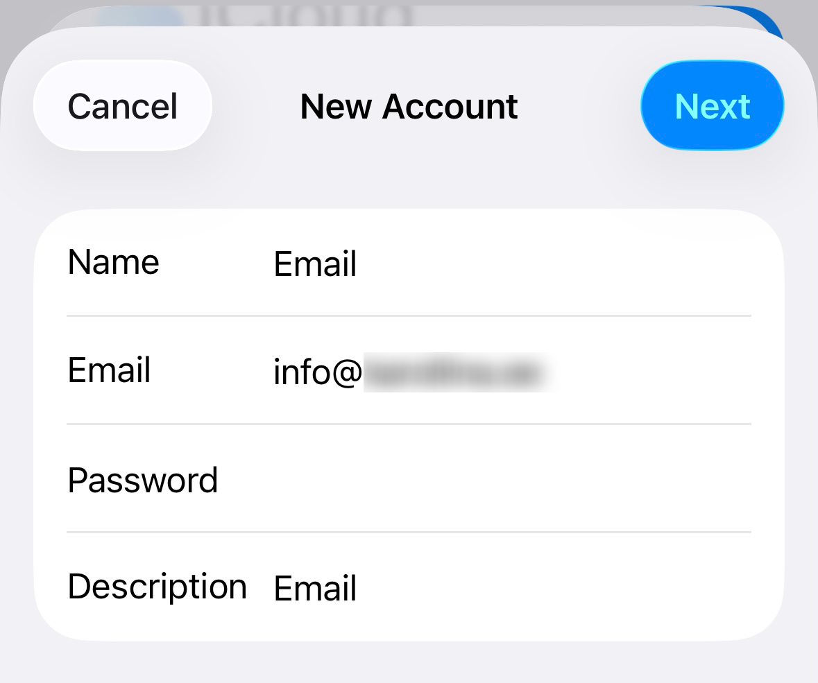 1. Vali telefoni menüüs esmalt Settings, seejärel Apps, Mail, Mail Accounts, siis Add Account. Sisesta e-posti aadress ja vajuta Next.