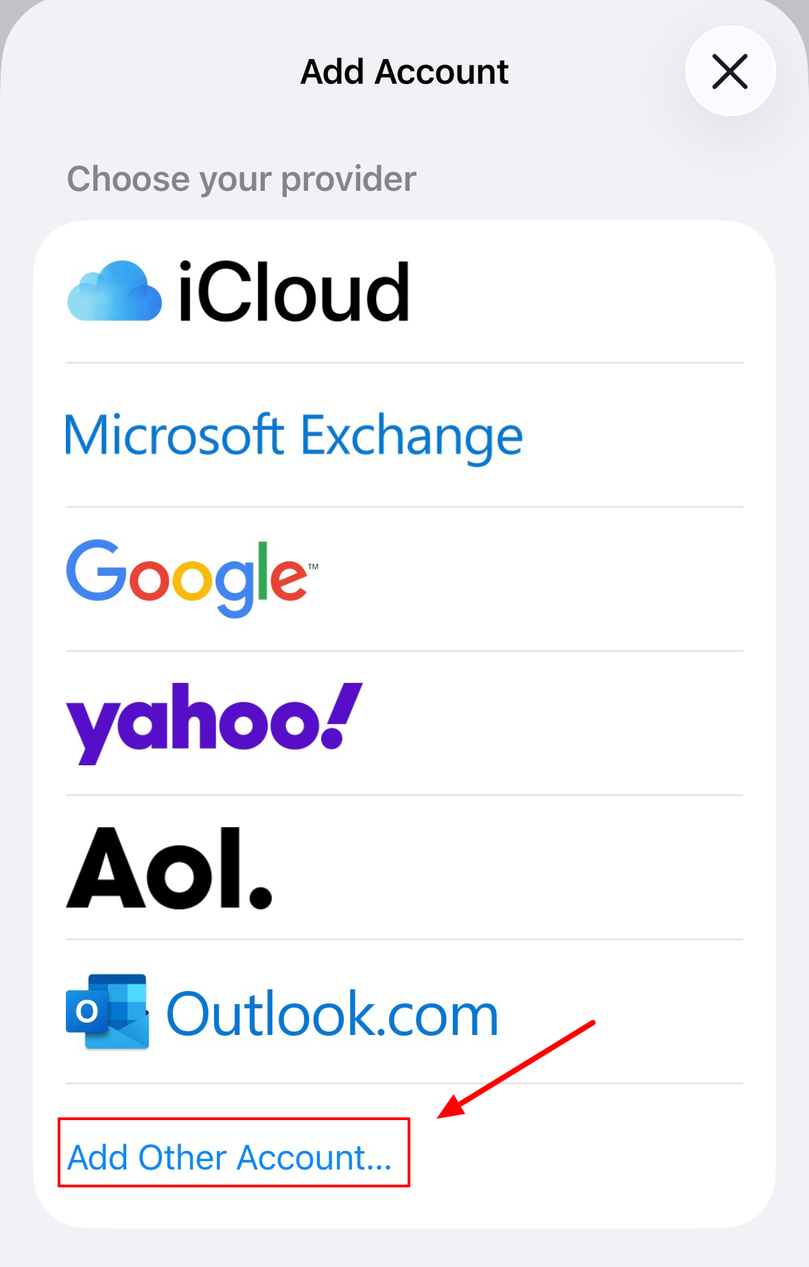 Seejärel vajuta Add Other Account
