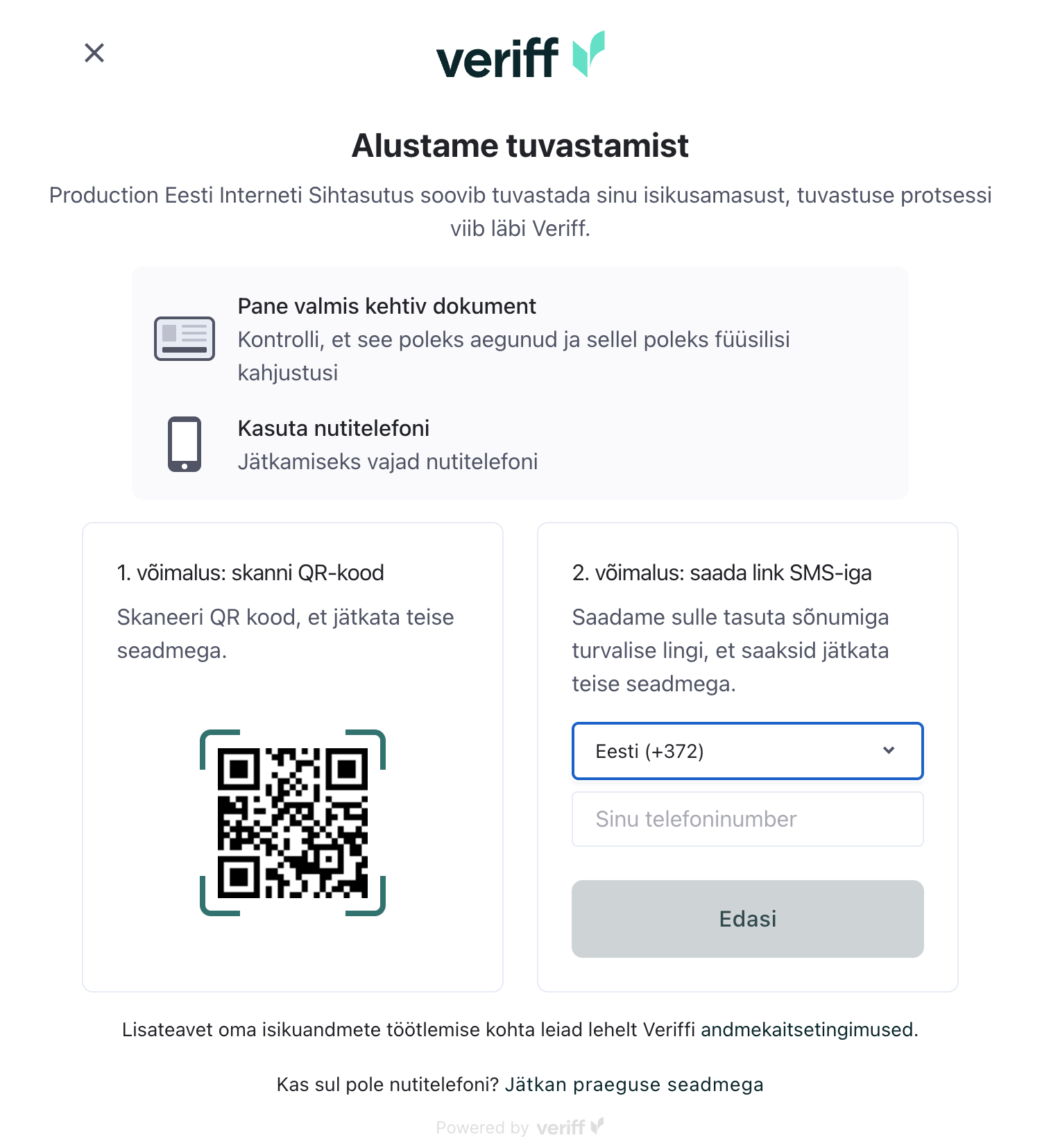 Pärast domeeni tellimist saadetakse teile isikutuvastuse link, mille kaudu saate protsessi alustada.