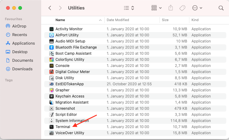 - Kõigepealt ava Terminal. Ava Finder, vali Applications > Utilitities > Terminal.