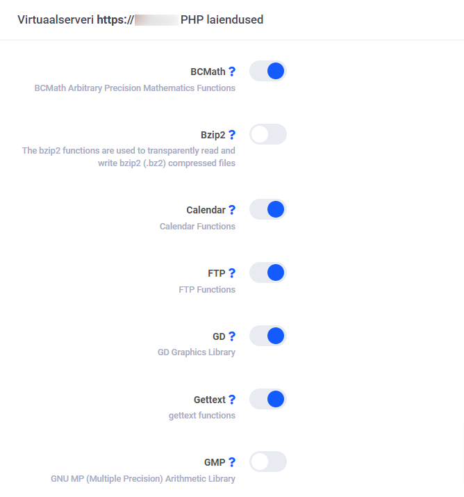 Enimlevinud PHP laiendeid saab muuta ka otse Zone virtuaalserveri haldusest.