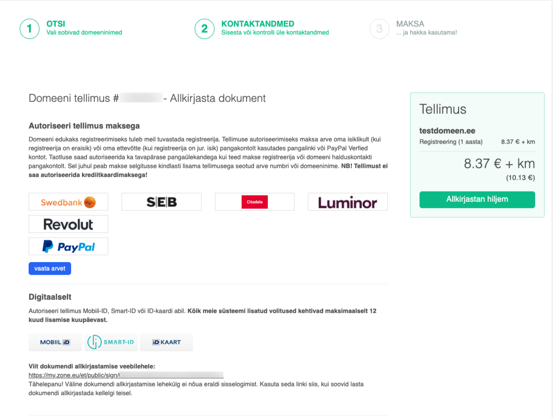 Järgmisel sammul on vaja domeeni taotlus allkirjastada.