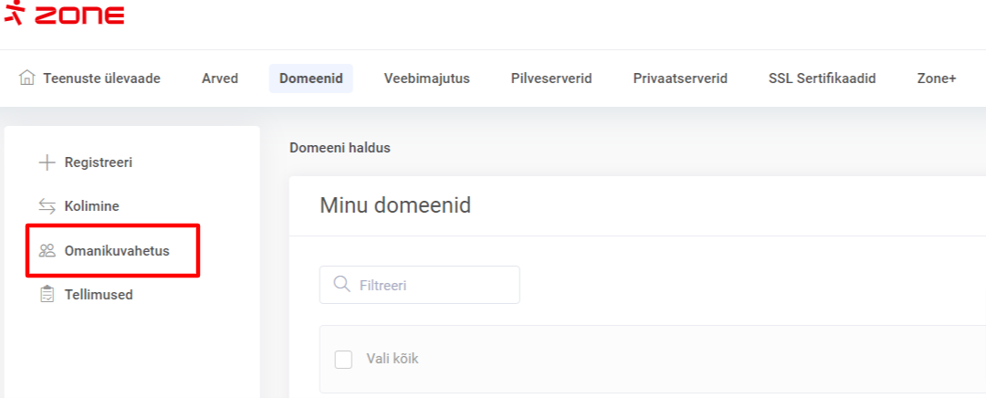 Omaniku vahetamiseks tuleb vormistada tellimus  Minu Zone keskkonnas domeenide halduse valikus Omanikuvahetus. Siin on ka tellimusvormi otselink.