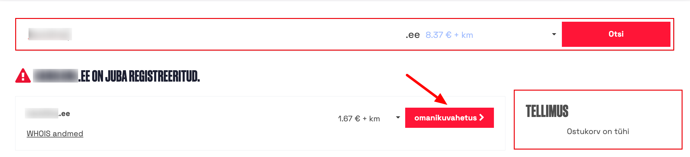 Avanevas aknas tuleb sisestada otsingukasti domeeni nimi.