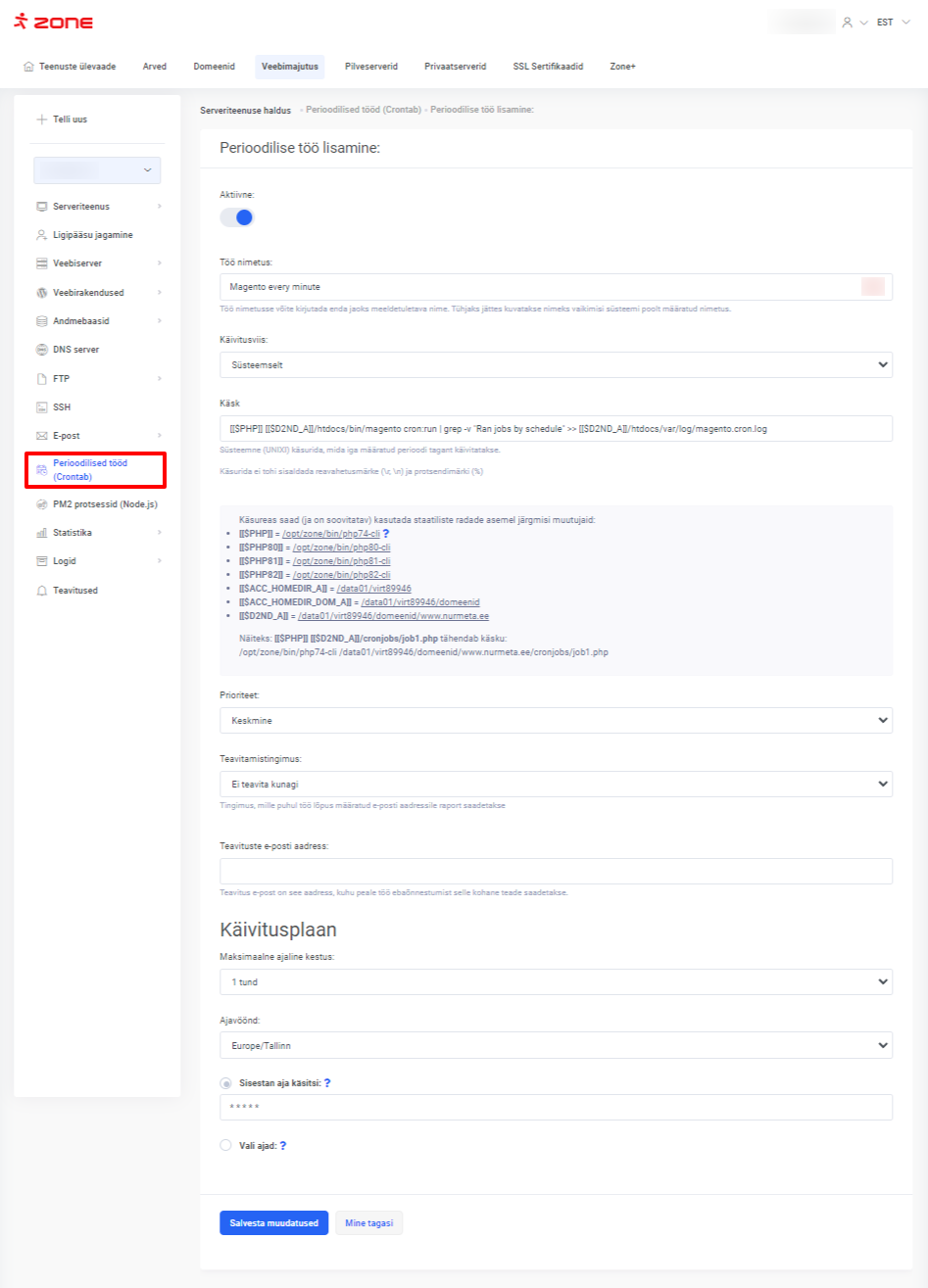 Magento 2 toimimiseks on vaja veebimajutuse halduses lisada 3 cron-tööd.