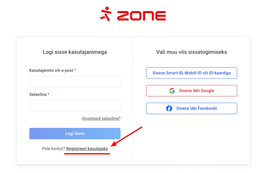 ZoneID kasutajakonto registreerimiseks vali Zone kodulehe päisest Minu Zone.