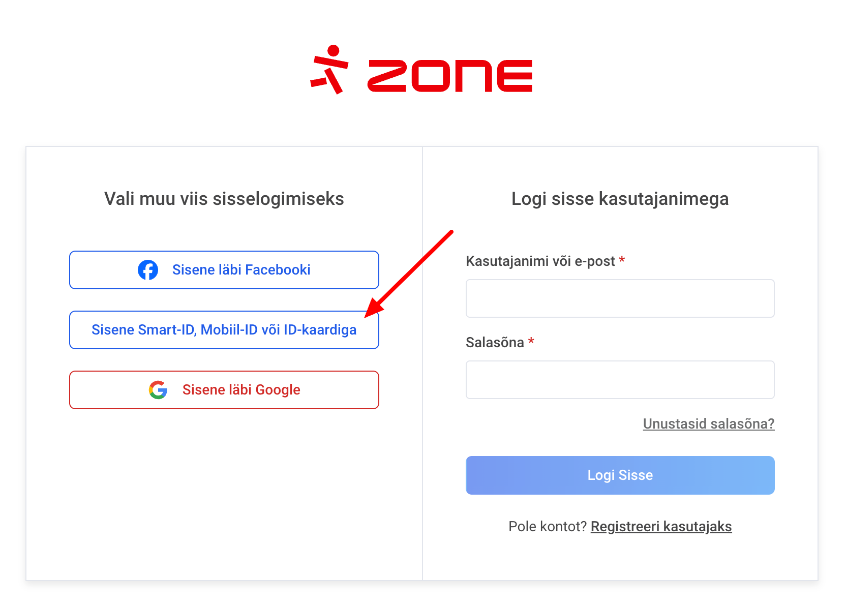 Mobiil-IDga sisselogimiseks vali Zone avalehel ülal paremal Minu Zone.