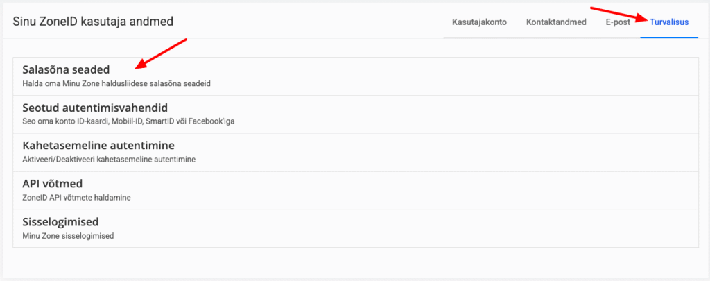 Salasõna seadete alt on võimalik ka salasõnaga sisselogimine keelata või lubada juhul, kui oled ZoneID kontoga sidunud ka mõne isikukoodipõhise autentimisvahendi.