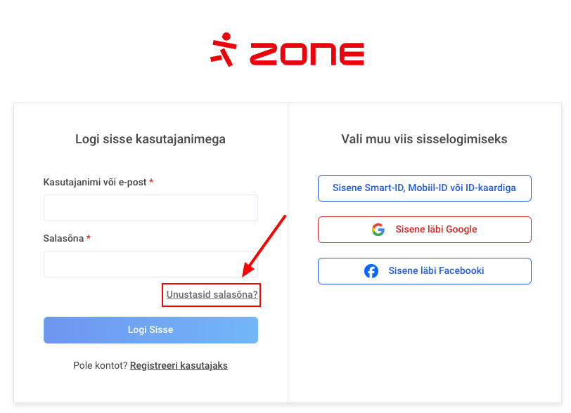 Selleks ava Minu Zone keskkonda sisenemise leht ning vali alt vasakult Unustasid salasõna?.