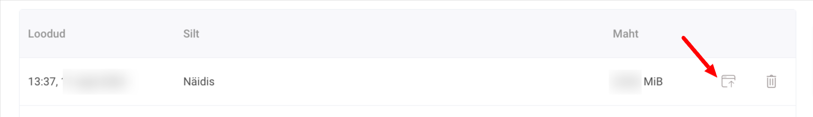 Tõmmisest taastamiseks vali loodud tõmmiste seast soovitud tõmmis ning klõpsa nupule Taasta.