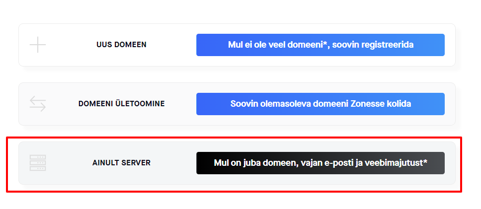 Esimeseks sammuks on valida välja oma veebilehe ja e-posti majutuseks sobilik virtuaalserveri pakett. Ülevaate pakutavatest pakettidest leiad siit.