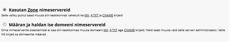 Järgnevas aknas klõpsa valikule Kasutan Zone nimeservereid