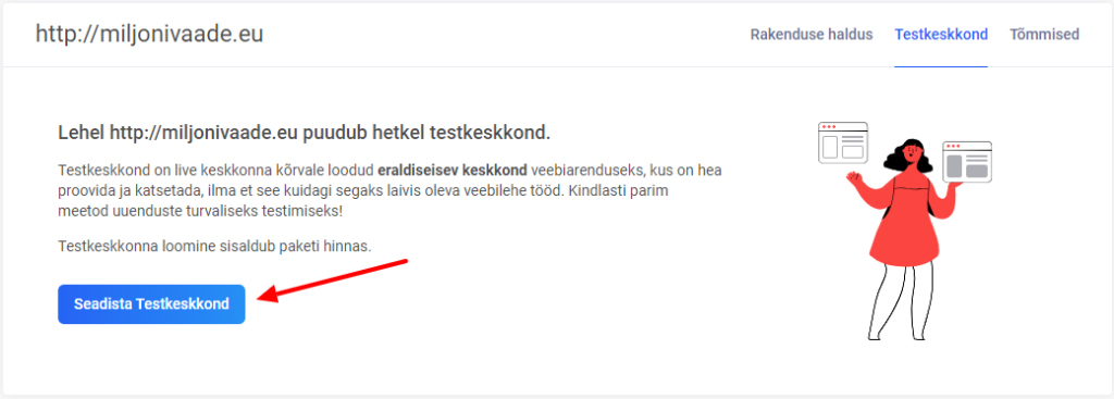 Avanenud lehel vali Testkeskkond ja Seadista Testkeskkond.