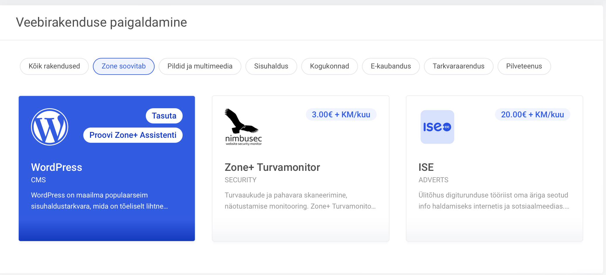 Veebilehe turvamonitori on võimalik paigaldada Zone+ rakenduste halduri kaudu.