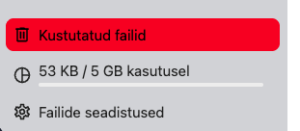 Faile on võimalik taastada või püsivalt kustutada avades kausta Kustutatud failid