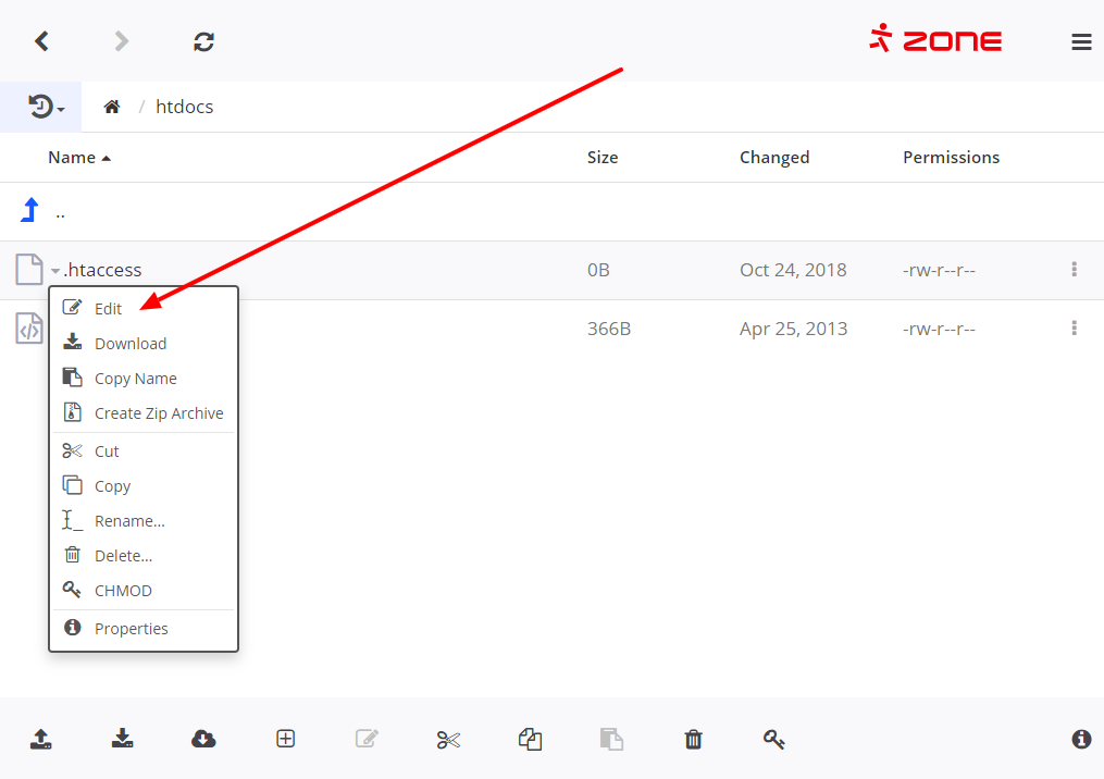 Чтобы изменить содержимое файла, щелкните файл левой кнопкой мыши и выберите Edit.