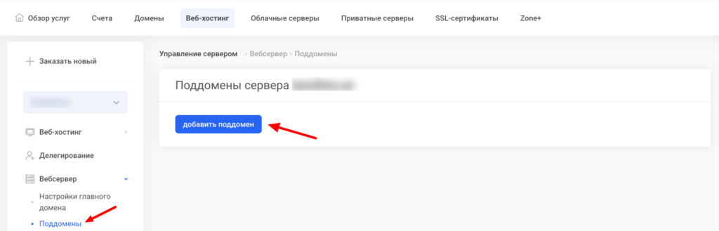 Вы можете добавить поддомен в панели управления Мой Zone в разделе Вебхостинг, выбрав Вебсервер, Поддомены и добавить поддомен.