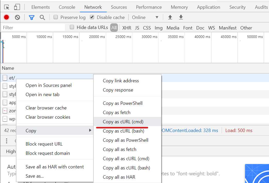 Network. - В верхней части проблемного запроса щелкните правой кнопкой мыши и выберите