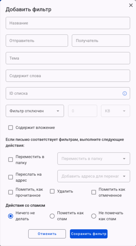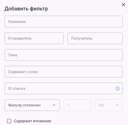 Условия фильтрации писем
