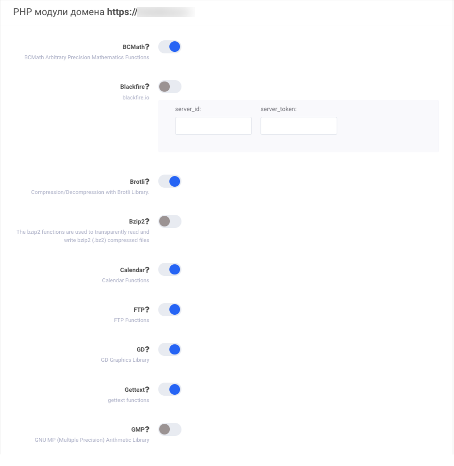 Наиболее распространенные расширения PHP также могут быть изменены непосредственно из администрирования виртуального сервера Zone.