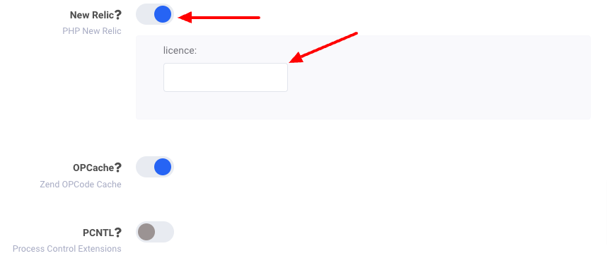 В следующем окне найдите поле New Relic, поставьте в нем галочку и добавьте ключ, который вы получили для лицензии, в строку под ним.
