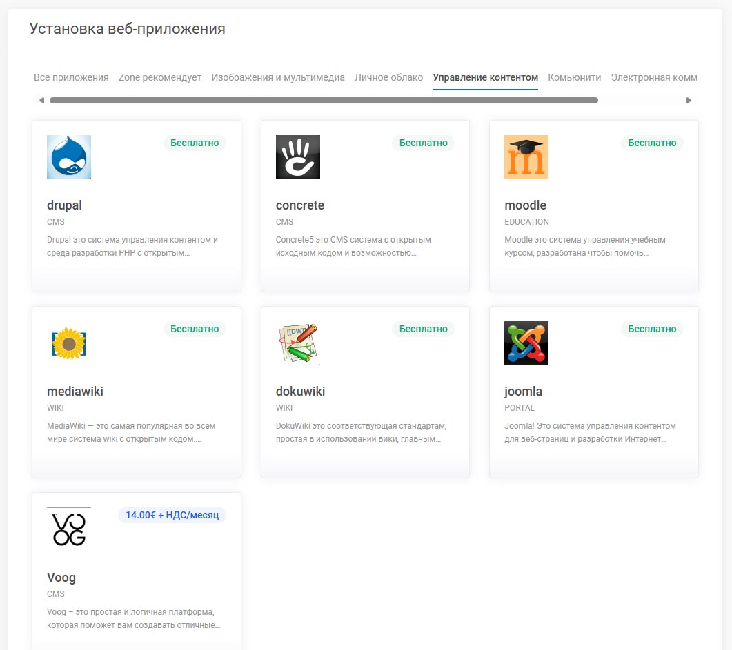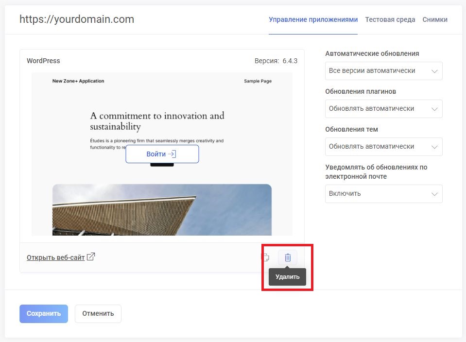 Веб-хостинг выберите Веб-приложения –> Мои приложения