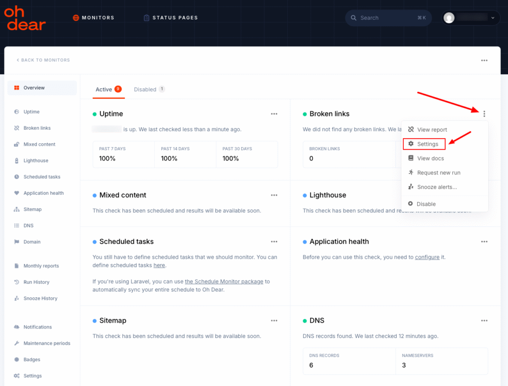 - Broken links & mixed content (битые ссылки и смешанный контент) — Oh Dear сканирует страницы и уведомляет о проблемах, таких как битые ссылки или смешанный контент (например, одновременное использование HTTP- и HTTPS-ресурсов).