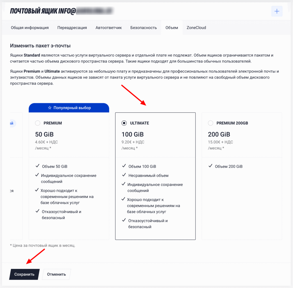 Пакеты почтовых ящиков Premium и Ultimate предназначены для профессиональных пользователей электронной почты и энтузиастов.