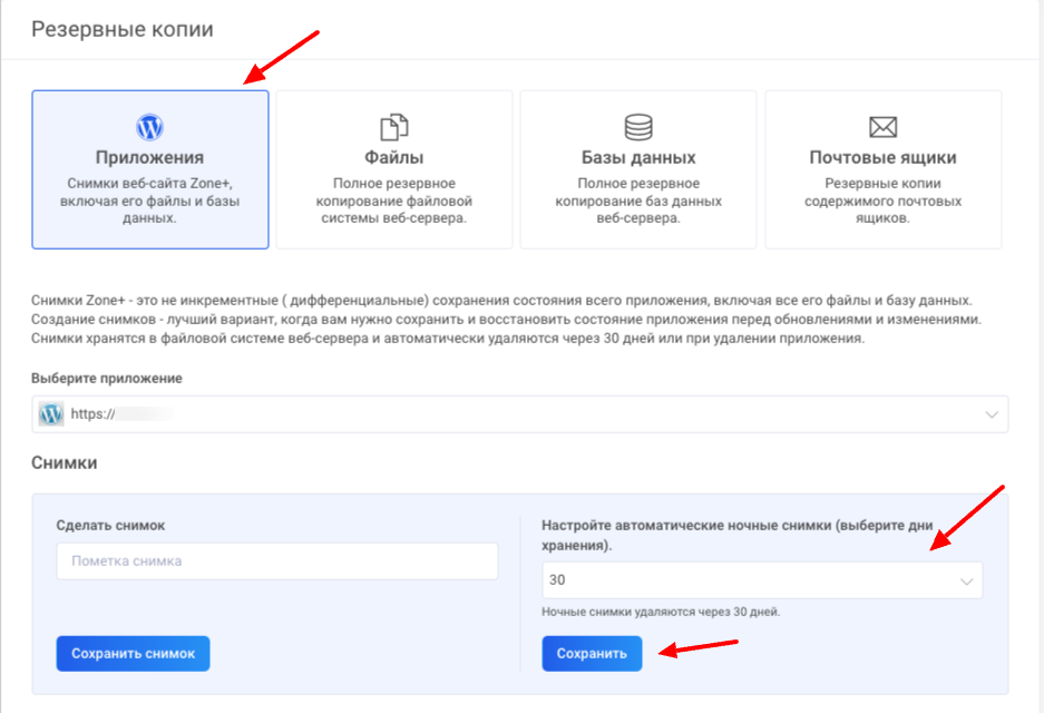 Для снимков вместо обычных 14 дней можно настроить систему на создание снимков приложения и их хранение до 30 дней.